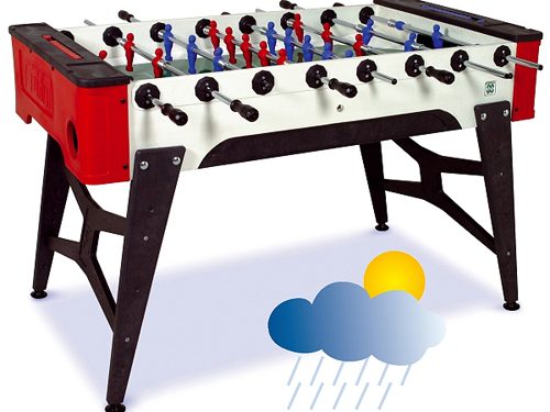 Dieser professionelle und wetterbeständige Tischkicker mit einer praktisch klappbaren Tischbein-Konstruktion benötigt nur eine reduzierte Aufbewahrungsfläche und kann somit extrem platzsparend transportiert werden.