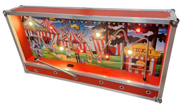 Ein immer wieder sehr beliebtes Spiel. Diese Version ist mit hellen LEDs ausgestattet, die auch bei Tageslicht gut sichtbar sind. Im Ruhezustand brennen die Lampen konstant, bei Berührung erlöschen die Lampen kurzzeitig. Außerdem ertönt kurz ein Signal. Das Spiel ist mit einem stabilen Edelstahlrohr ausgestattet. Das Rohr ist kabellos und batterielos, bietet somit viele Vorteile. Diese Deluxe Ausführung hat einen Strafpunktezähler.